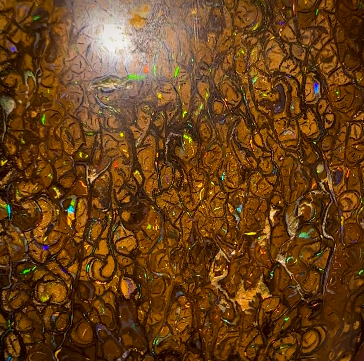 A gorgeous Australian Boulder Opal cut from a Yowah Nut filled with colour!