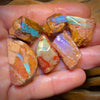 A parcel of Queensland Boulder Pipe Opal rough pieces that have been blocked out to reveal vibrant faces of blue and green colour.