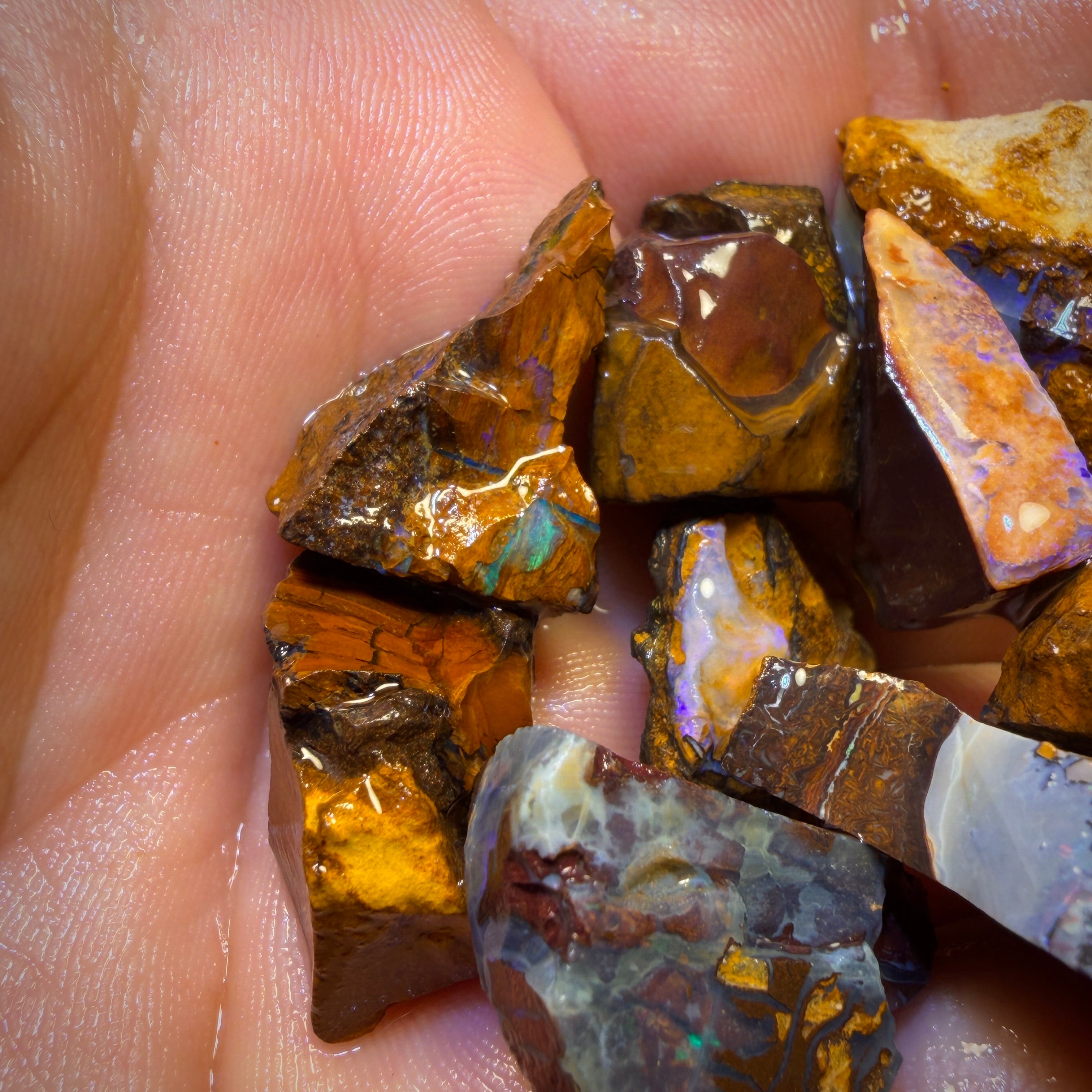 A parcel of Yowah Nut Opal Rough pieces displaying predominantly blue and green colouration. Crystal Centre pieces included!