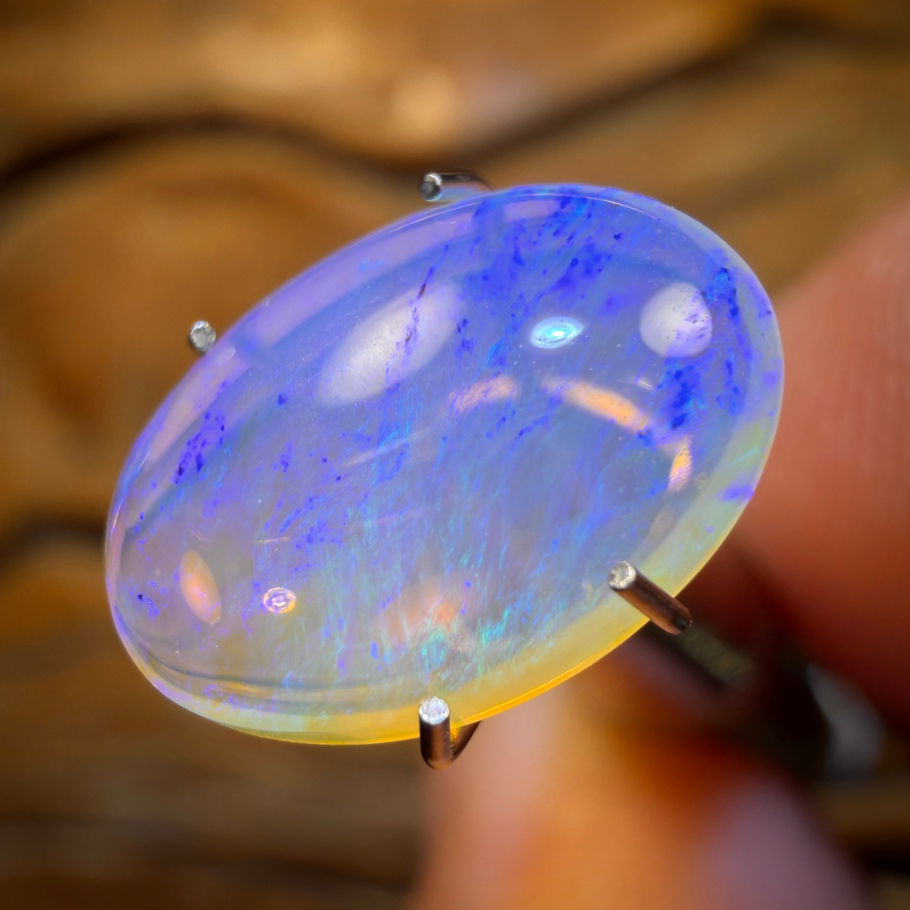 This stone displays vibrant suspended blue and green colouration in transparent crystal opal.