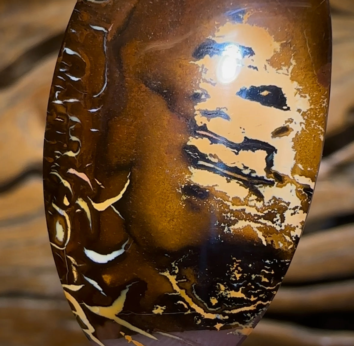 A beautiful, Australian Boulder Opal cut from a Yowah Nut. Can you spot the picture?