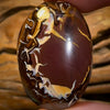 This stone displays hints of red, blue and green colouration in tribal patterns contrasting with tan earth colours.