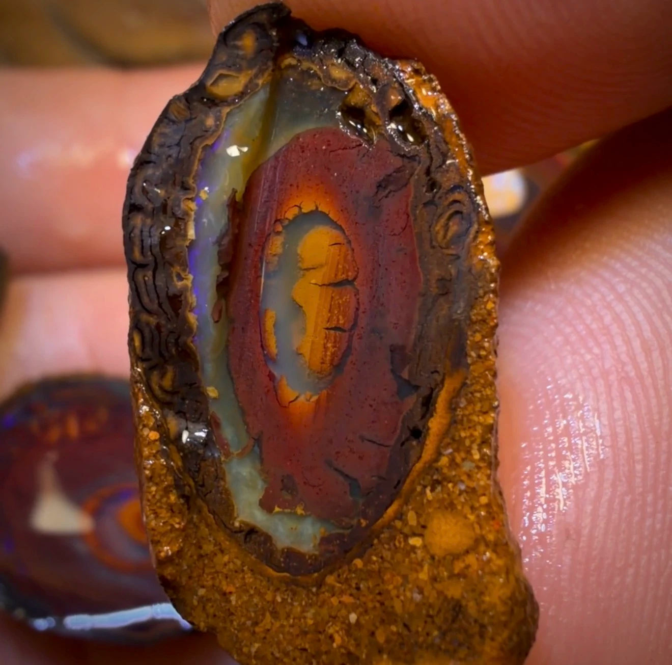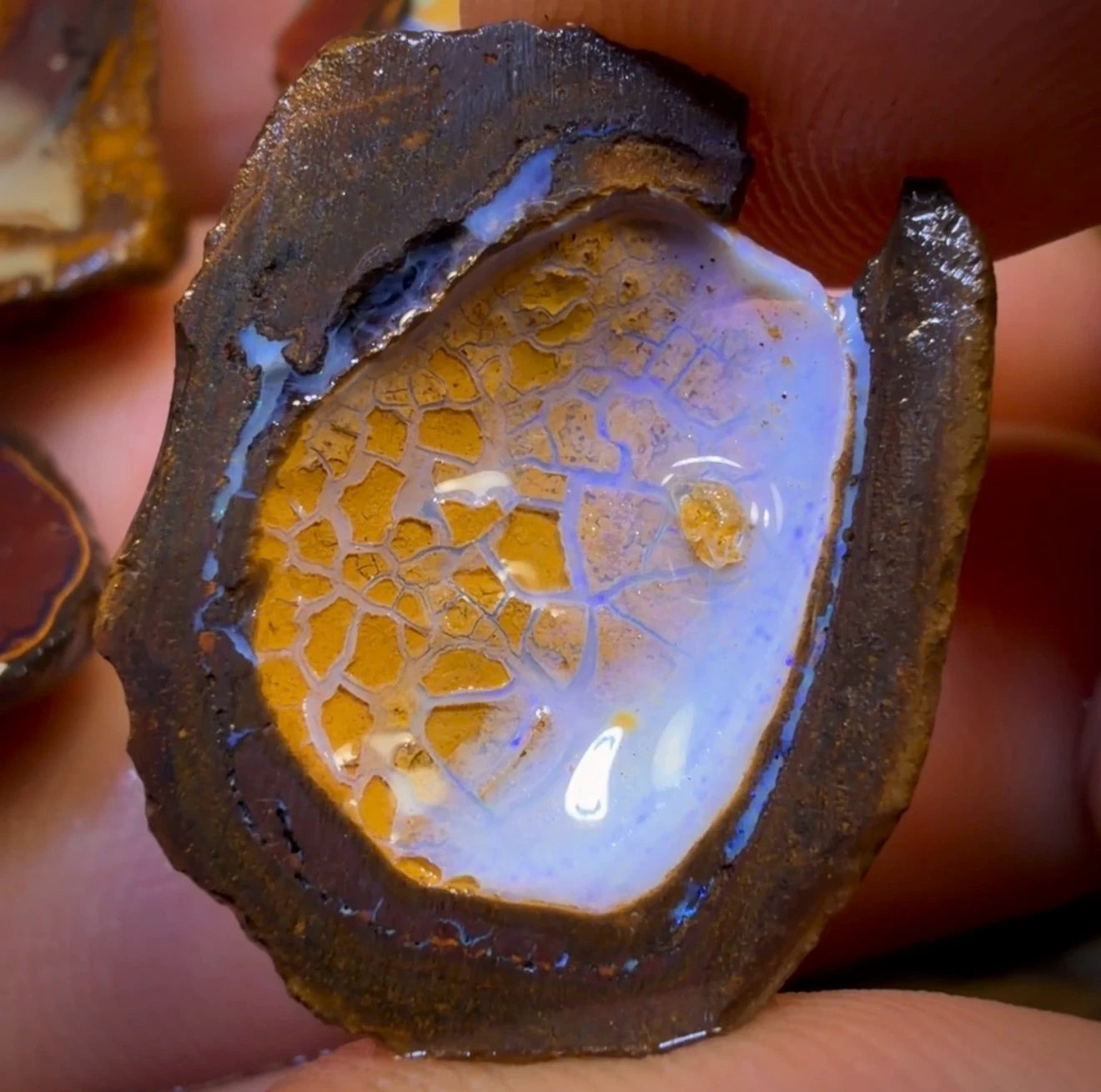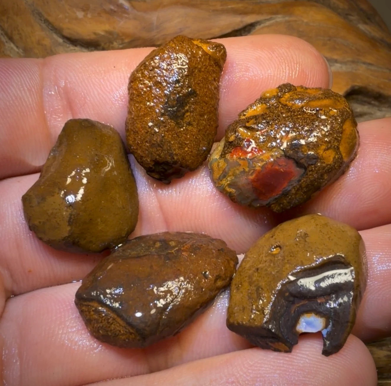 Ein wunderschönes Paket roher Yowah-Nuss-Opale mit teilweise ausgebildeten Kristallzentren und blauer und grüner Färbung.