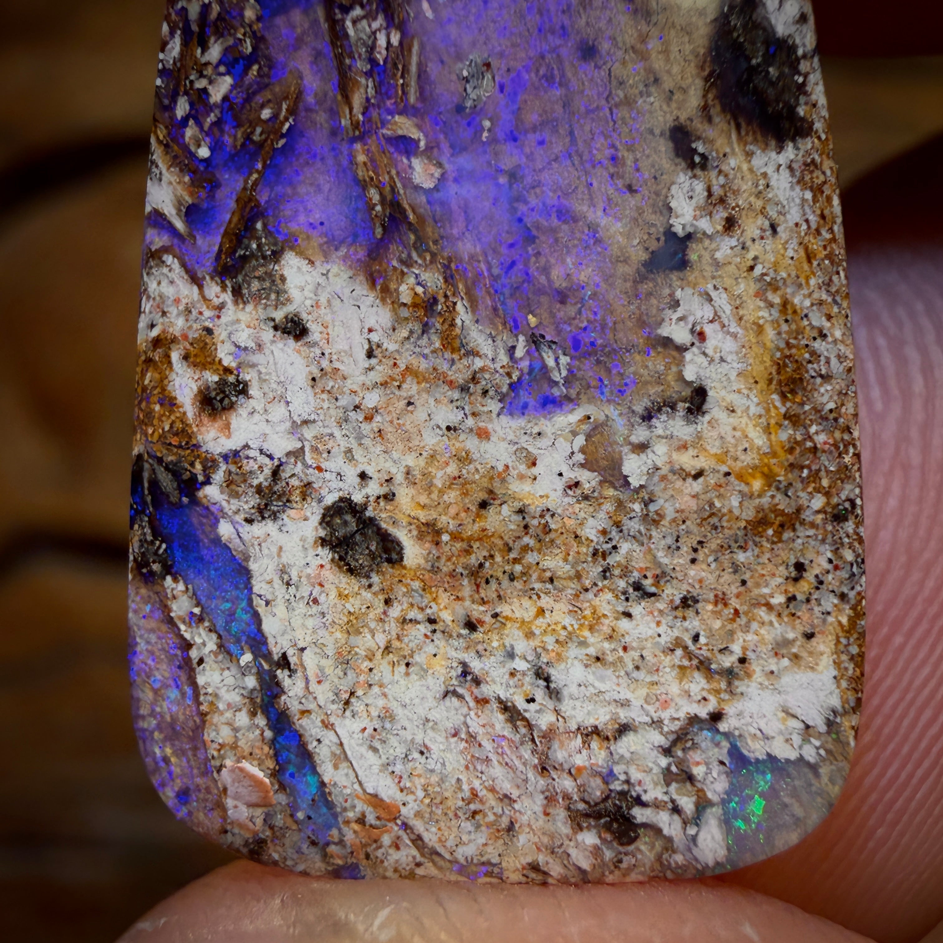 Dieser Stein zeigt eine wunderschöne violette Färbung in transparentem Kristallopal, die an einen in der Zeit eingeschlossenen Wasserpool erinnert.