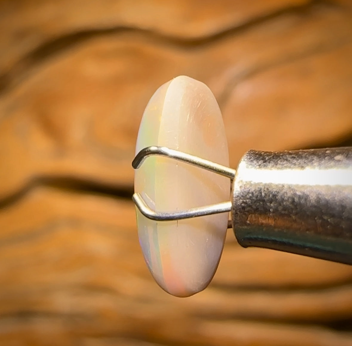 This stone displays vibrant red, orange, yellow, blue and green colouration in flag and chaff patterns.