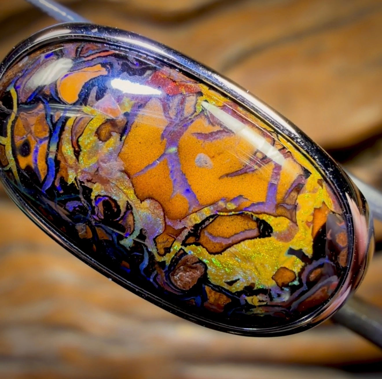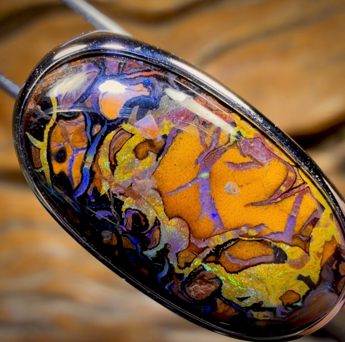 Ein wunderschöner Ring aus Sterlingsilber mit einem massiven Queensland Boulder Opal.