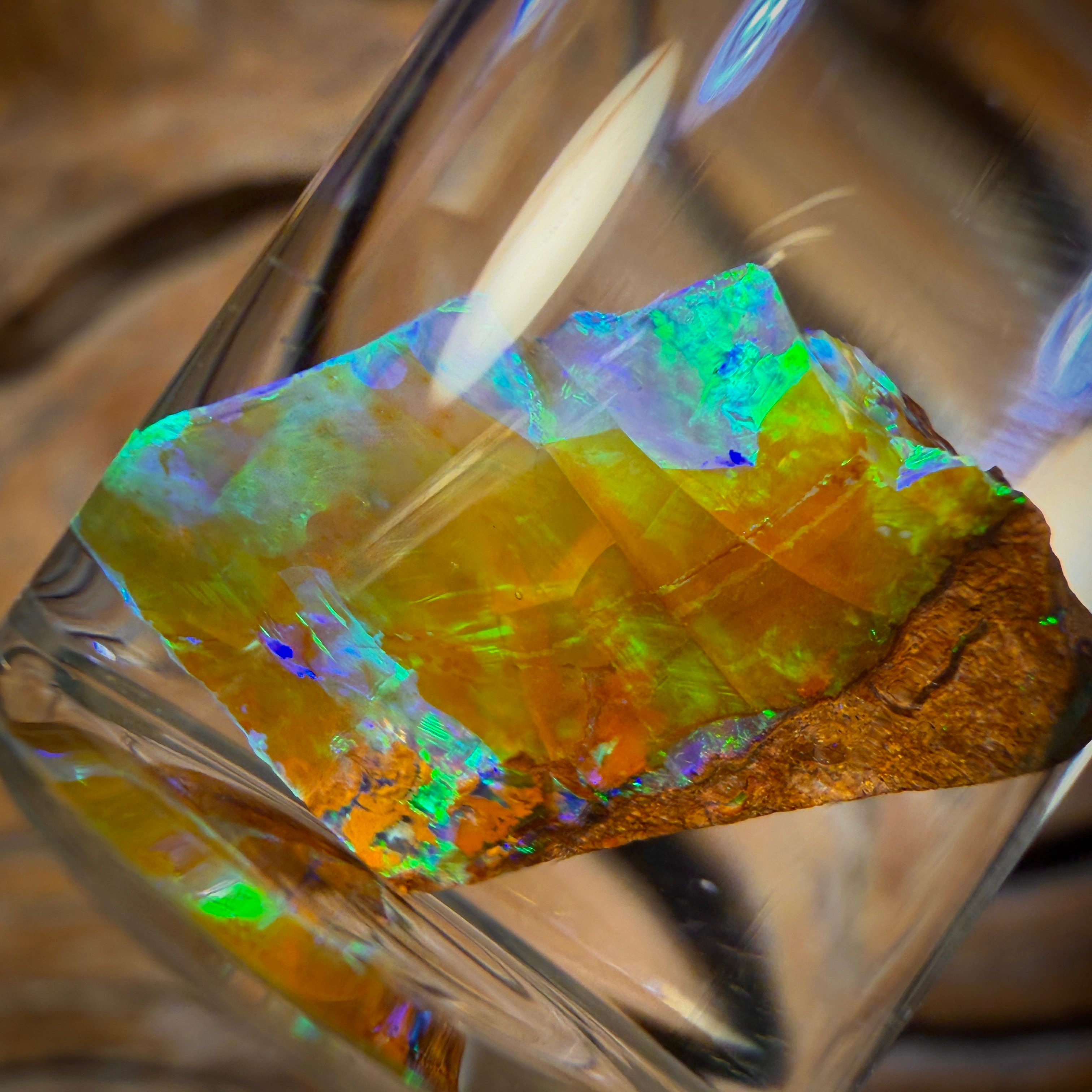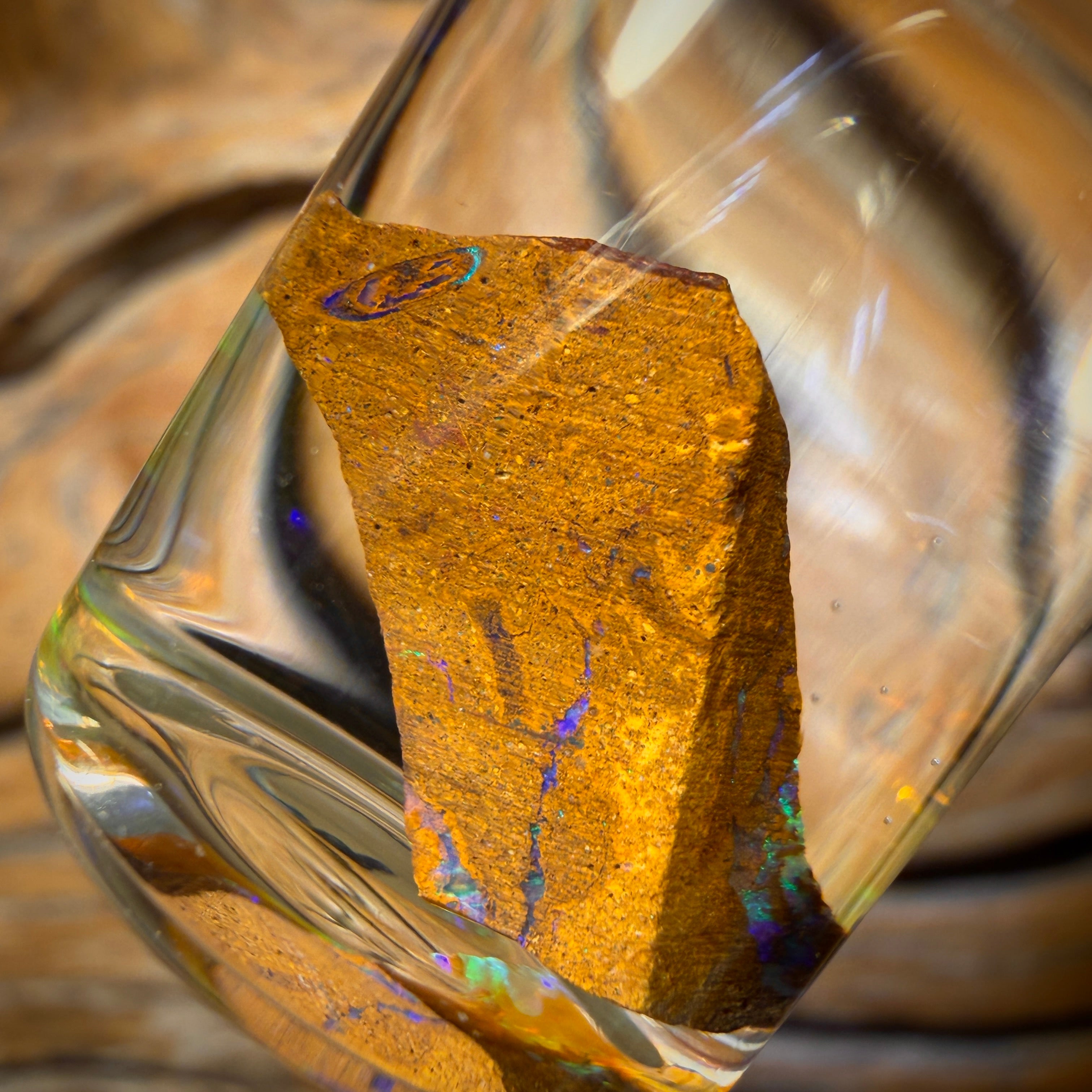 It displays vibrant and metallic Golden green and Blue colouration in stunning suspended patterns!