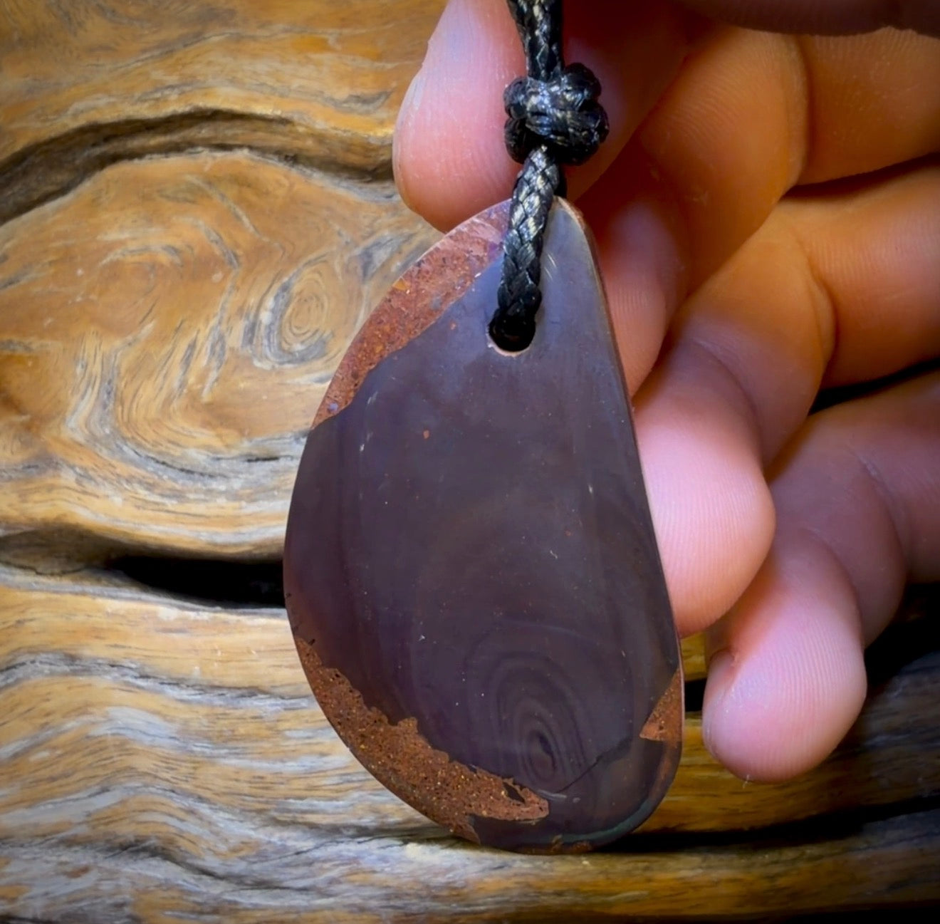 A beautiful solid Drilled Queensland Boulder Opal complete with an eco friendly vegan cord.