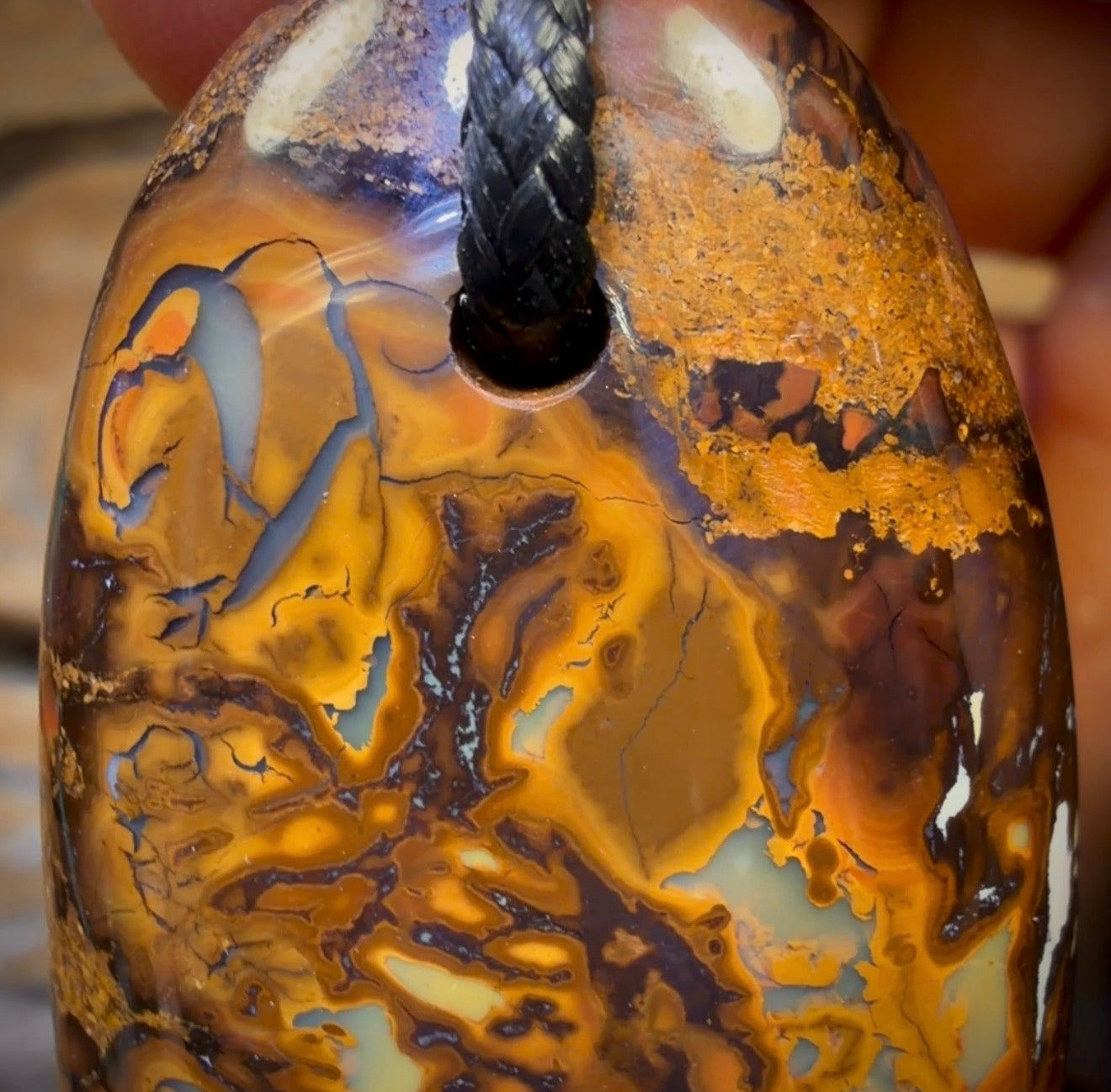 A beautiful solid Drilled Queensland Boulder Opal complete with an eco friendly vegan cord.