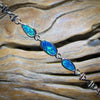 This bracelet features oval and teardrop shaped, high-quality, Australian Boulder Opal Doublets made using all natural materials.
