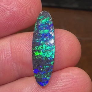 Great flashes of strong electric greens and blues on a dark black opal body tone. See video!
