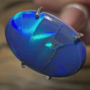 A quality solid Black Opal from Lightning Ridge NSW displaying purple / blue colouration.