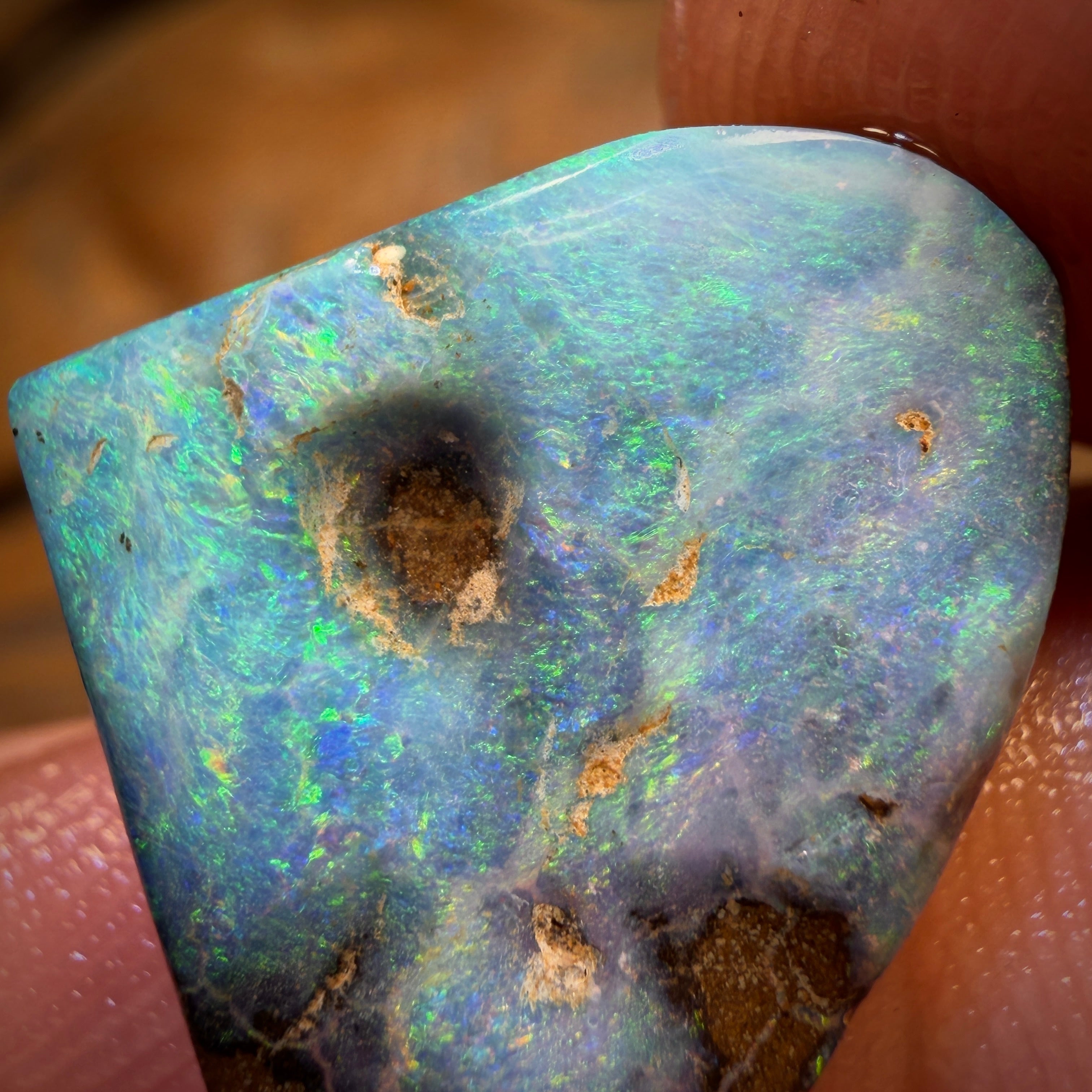 A quality Queensland Boulder Seam Opal Preform Rub displaying a face of gorgeous oceanic blue and green colouration.