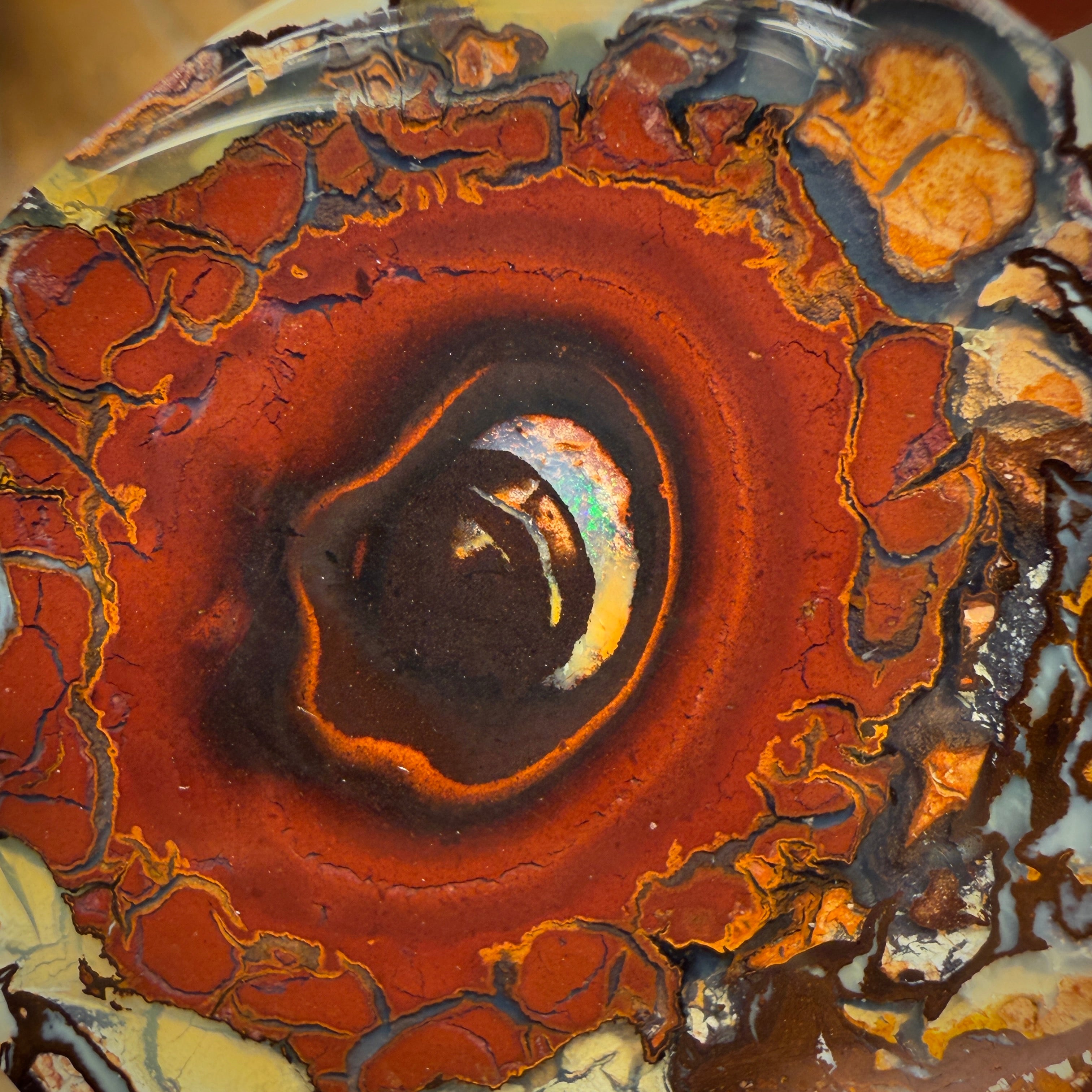 This stone displays potch opal contrasting with a range of earth tones in tribal patterns unique to the area.