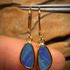 These earrings feature freeform shaped, high-quality, Australian Boulder Opal Doublets made using all natural materials.