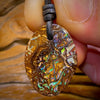 A beautiful solid, Drilled Queensland Boulder Opal necklace displaying vibrant blue and green colouration in gorgeous tribal patterns.