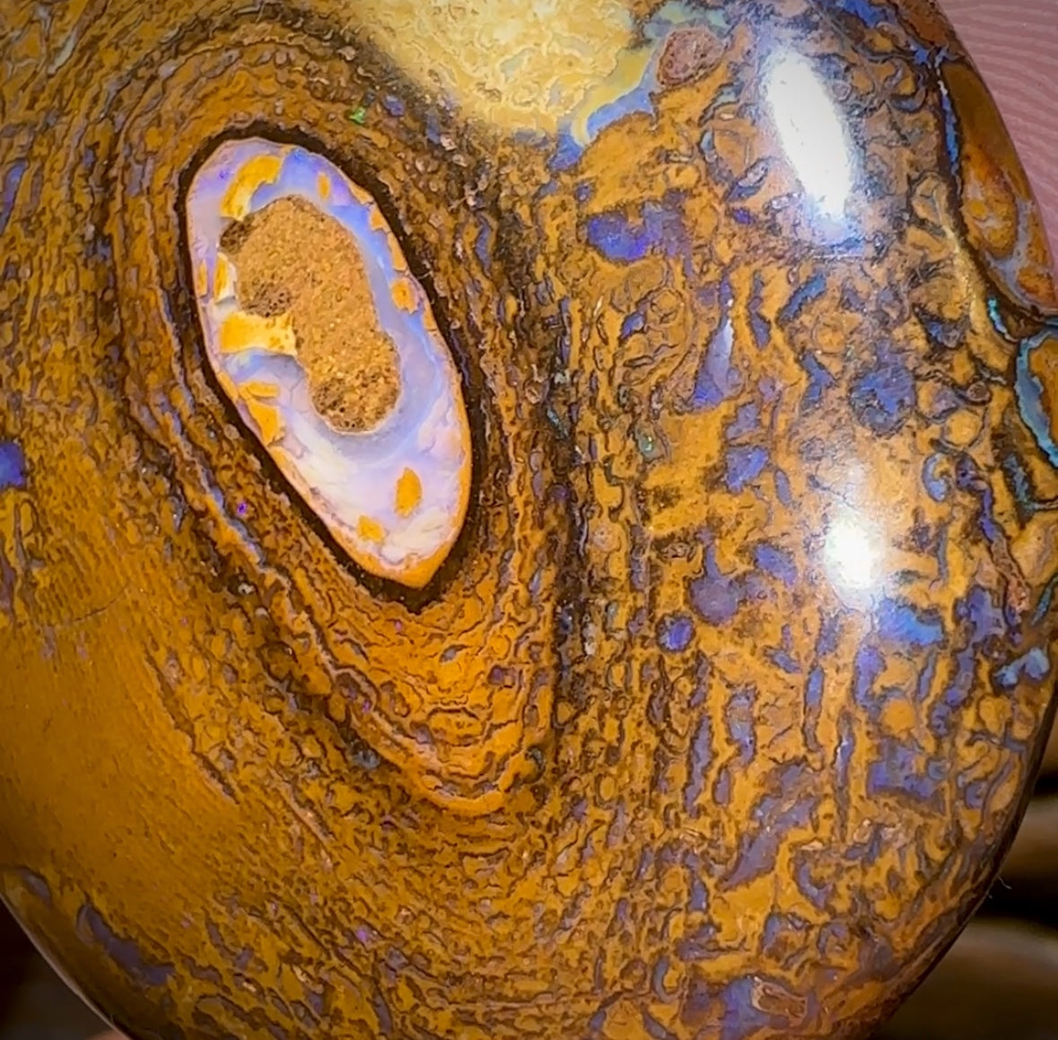 This pair displays blue and green colouration in tight and intricate tribal patterns surrounding partial crystal centre’s on gorgeous tan ironstone.