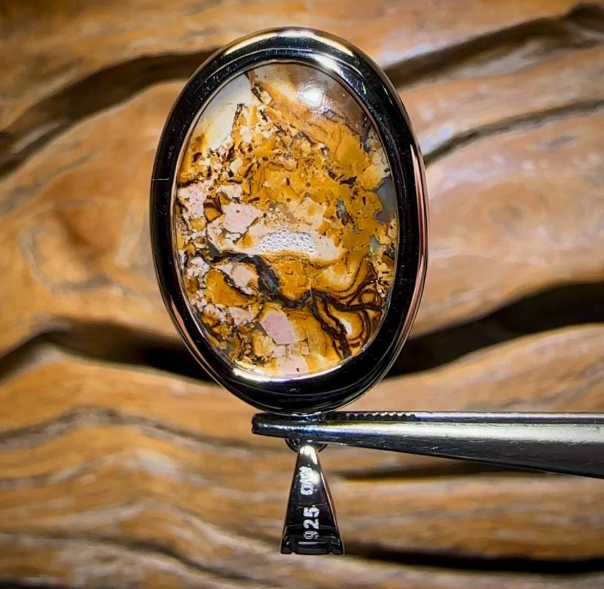 Less than Australian Setting Price! A beautiful Sterling Silver, Solid Queensland Boulder Opal pendant.