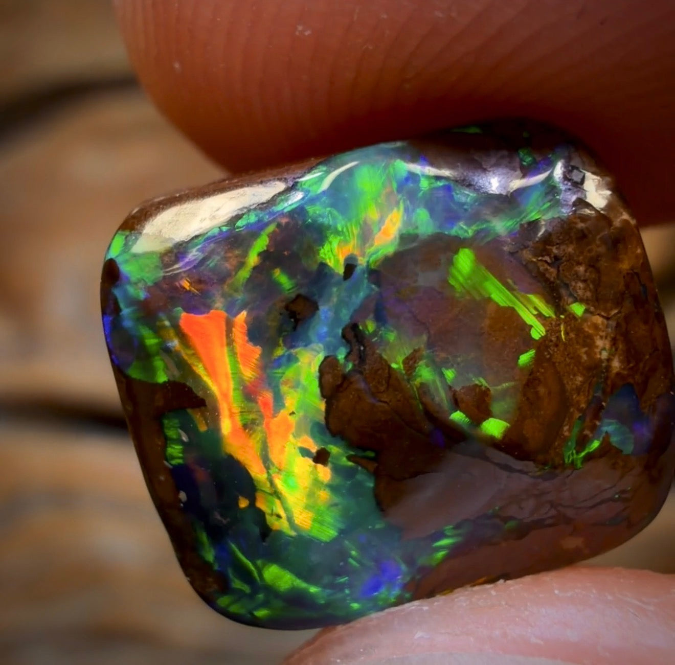A stunning Australian Boulder Seam Opal from Winton with an undulating face that has been expertly hand dremelled.