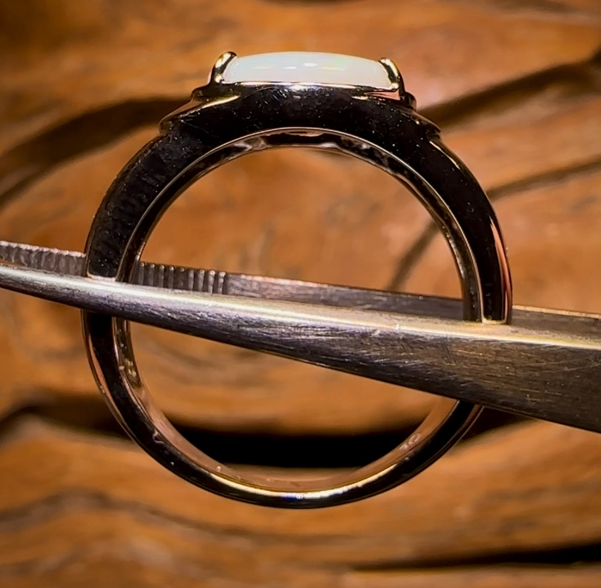 A beautiful South Australian Crystal Opal, claw set into a genuine sterling silver (925) ring.
