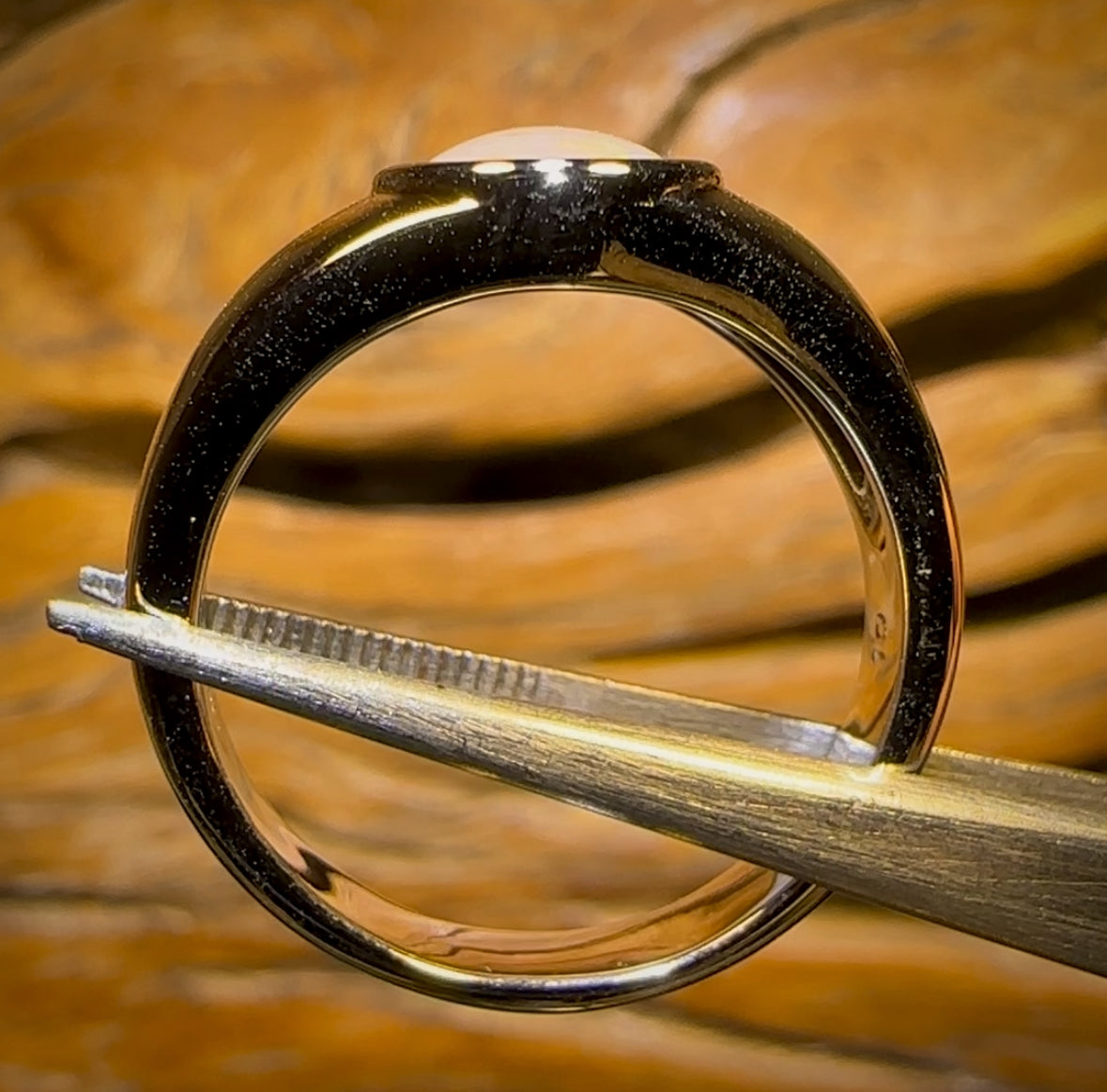 A beautiful Sterling Silver (925) Opal Ring, featuring a South Australian Crystal Opal cut to a freeform shape with a quality finishing polish.