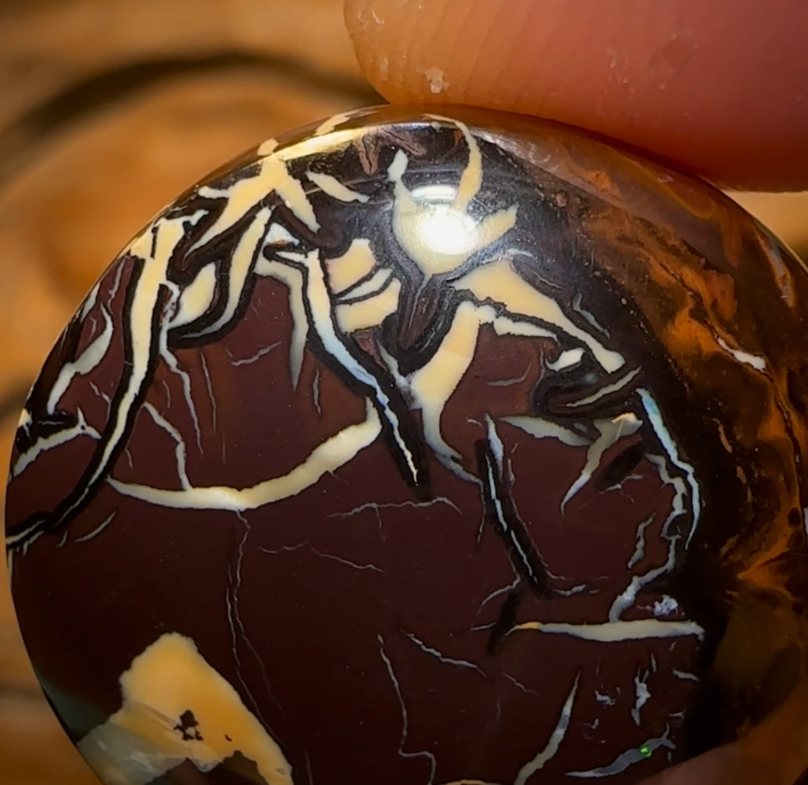 A beautiful, Australian Boulder Opal cut from a Koroit Nut.