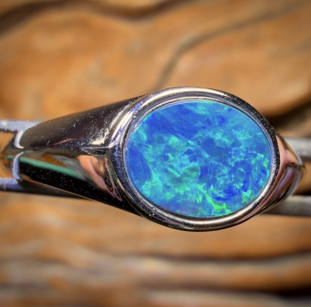 Bague unisexe en argent sterling et opale boulder du Queensland