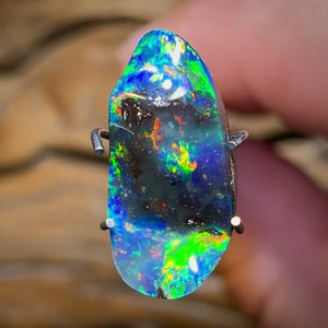 Une belle opale solide du Queensland Boulder de Winton, présentant une face ondulée d'opale de couture qui a été méticuleusement travaillée à la main.