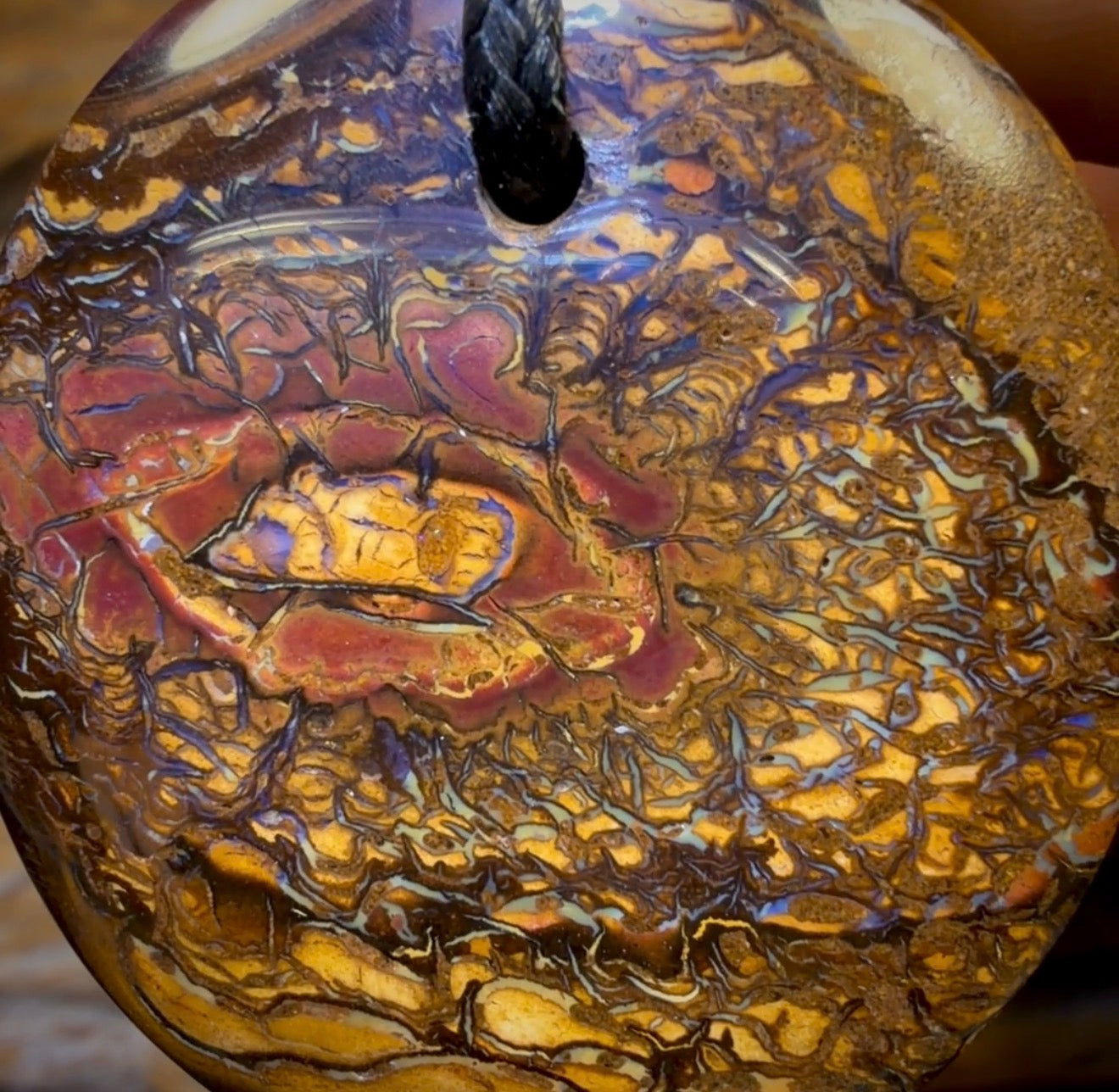 A beautiful solid Drilled Queensland Boulder Opal complete with an eco friendly vegan cord.