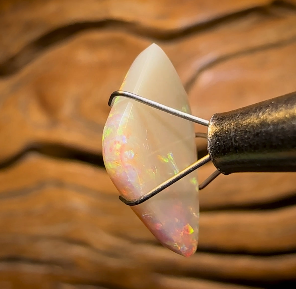 Une magnifique opale blanche d'Australie du Sud solide provenant des mines de Mintabie, désormais fermées.