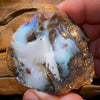 This rough Yowah Nut displays predominantly blue and green colouration alongside rare white porcelain potch opal.